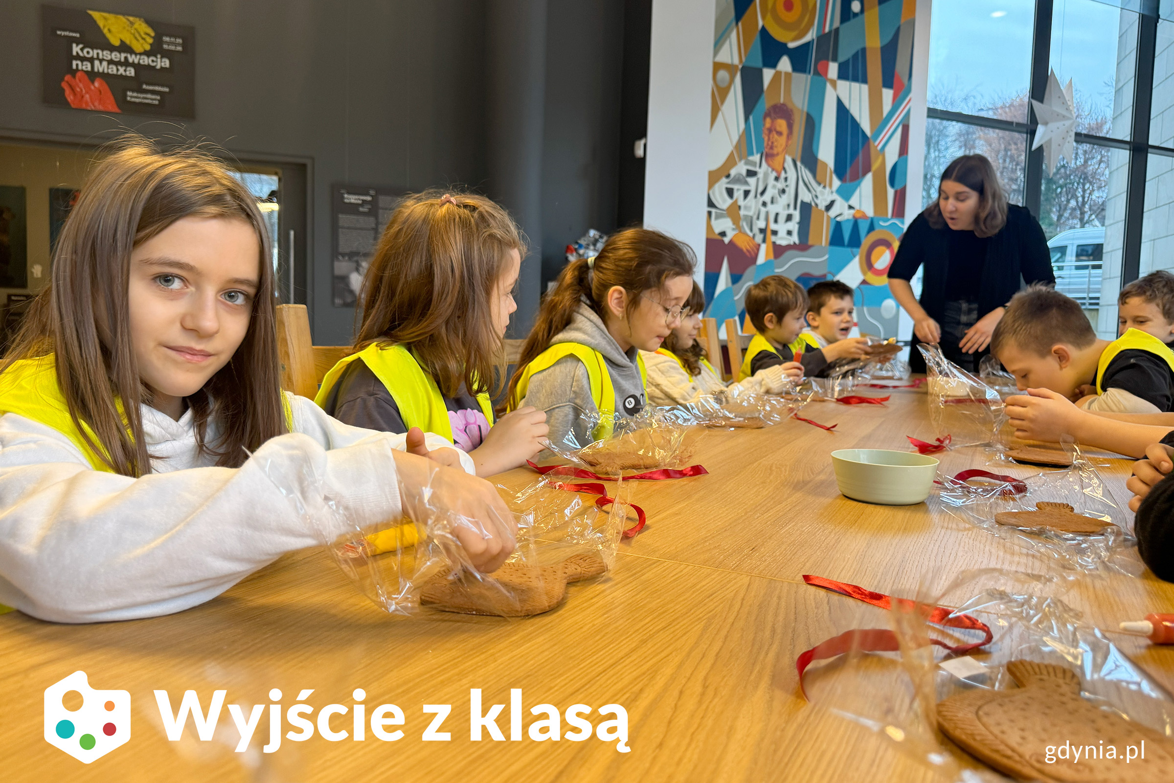 Projekt „Wyjście z klasą” w Muzeum Miasta Gdyni, za zdjęciu uczniowie z SP 52 podczas warsztatów zdobienia pierników (fot. Katarzyna Balcerzak)