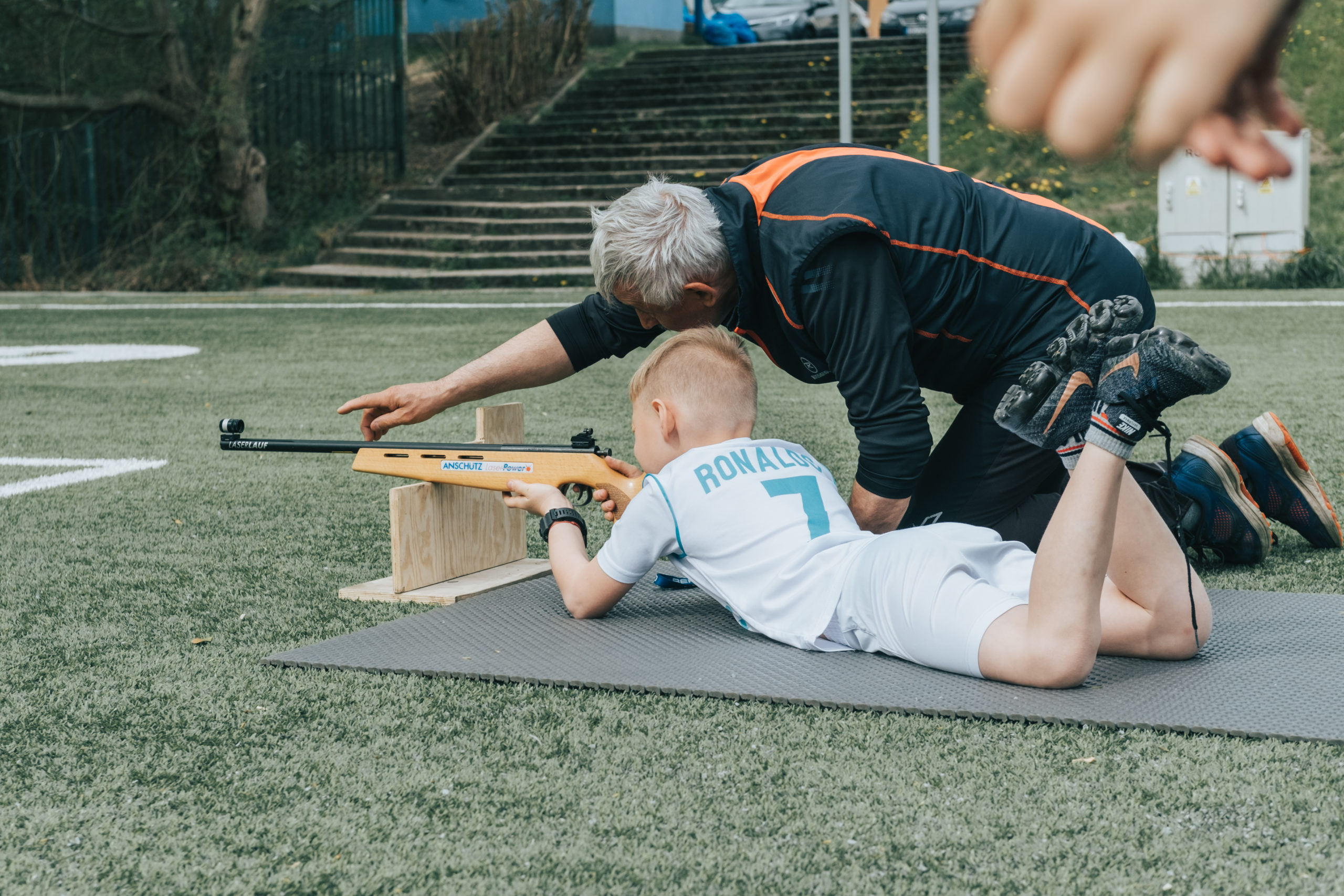 – Chcę im pokazać biathlon, to taka dyscyplina, która łączy w sobie bieganie ze strzelaniem – mówi Andrzej Olech, trener. – Dzieci używają na zajęciach profesjonalnego sprzętu do nauki biathlonu i chyba coraz bardziej to się im podoba.