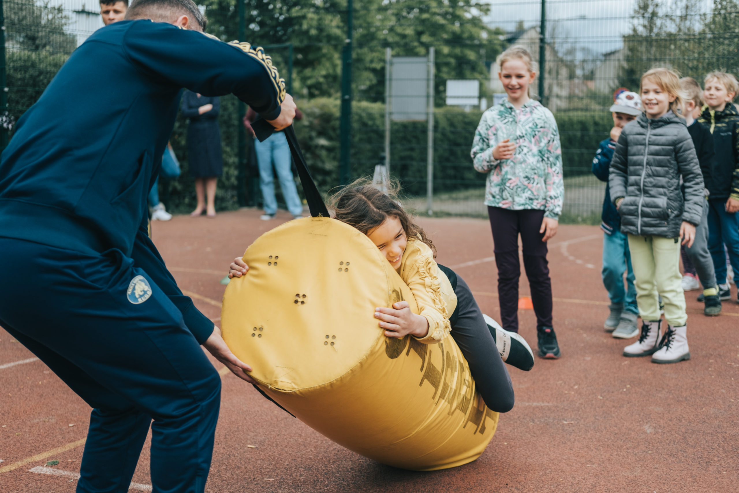 – Zajęcia, które odbywamy w szkołach, z chłopakami z gdyńskiego klubu Arki Gdynia Rugby, dziś prowadzimy dla drugoklasistów – opowiada Dariusz Komisarczuk, trener pierwszego zespołu Arki Gdynia Rugby. – Praca z młodzieżą jest naprawdę bardzo fajna i dzieciaki się aktywnie adaptują do naszych warunków. Z rugby raczej miały niewiele wspólnego. Natomiast próbujemy je zachęcić do tego, aby poznały naszą dyscyplinę sportową, potrzymały tą piłkę jajowatą. Wszystkie dzieciaki się mocno z tego cieszą, biorą aktywny udział w zajęciach. „Wgraj się” również z naszego punktu widzenia, to bardzo fajna akcja i nie tylko dzieci się cieszą, bo my też cieszymy się, że bierzemy w nich udział.