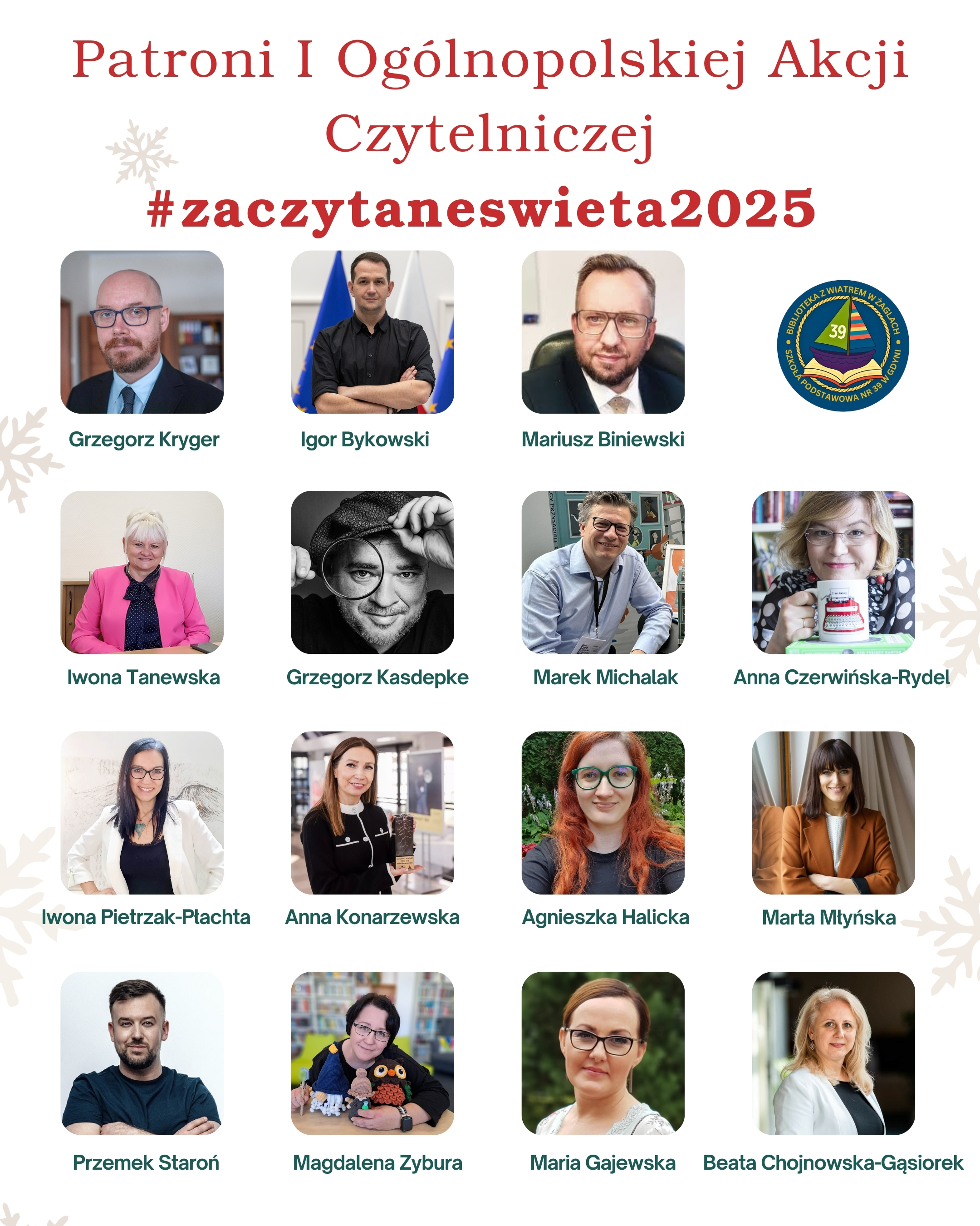 Organizatorzy i patroni szkolni: Maria Gajewska, Anna Konarzewska, Agnieszka Halicka, Magdalena Zybura, Iwona Pietrzak-Płachta, Marta Młyńska, Przemek Staroń, Beata Chojnowska-Gąsiorek